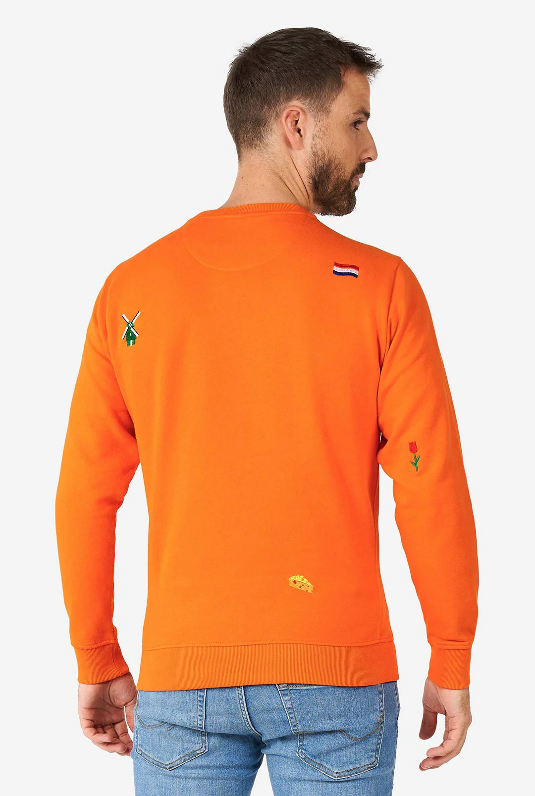 Dutch Sports fans rejoice! This sweater is meant for you! Fiery Orange and with the cheer on the side. Embroidered with typical Dutch icons, this long sleeve sweater is perfect for cheering on the national soccer squad, Max Verstappen, and all the other Dutch sports legends. Show some support with this sweater perfect for the (winning) season!