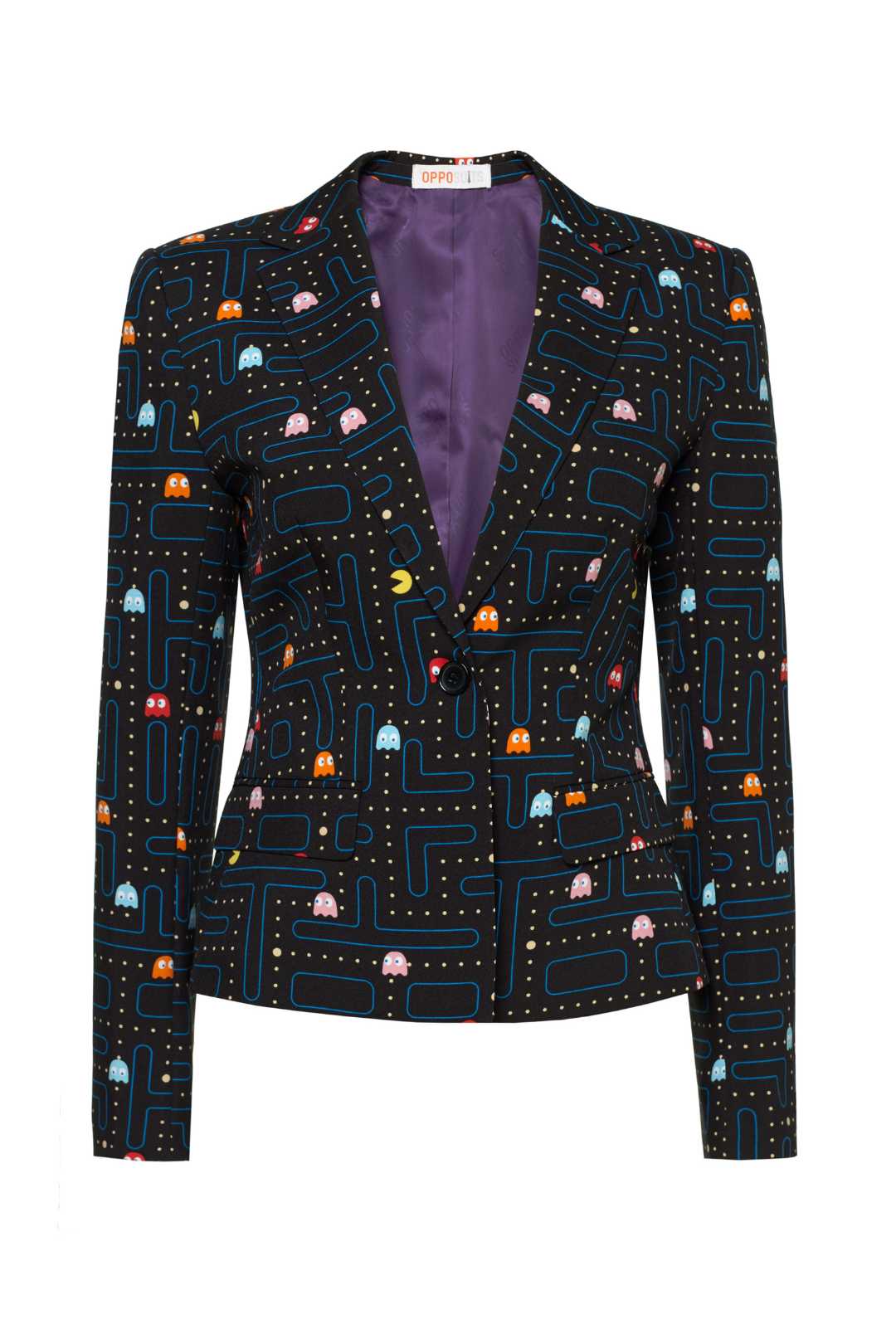 Take your wardrobe to the next level with a blazer based on the iconic arcade video game with the ever-munching yellow character: PAC-MAN. Instantly ‘Game Over’ your friends in the clothing game by simply rocking this official PAC-MAN™ jacket. Ready? Let’s play and go for a high score!