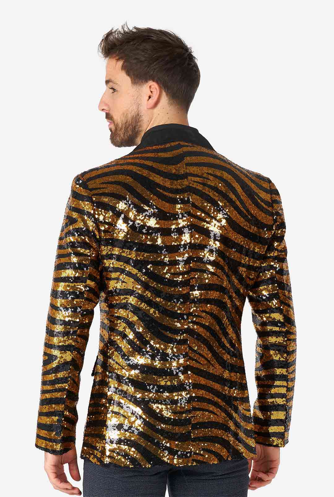 Party animals never shy away from a bit of glitter and glamour. If you want to make the dancefloor your home territory, the Tiger Royale blazer is all that you need. This shiny jacket is covered in striking sequins that will highlight that your both fierce and fabulous. Go get ‘em tiger!